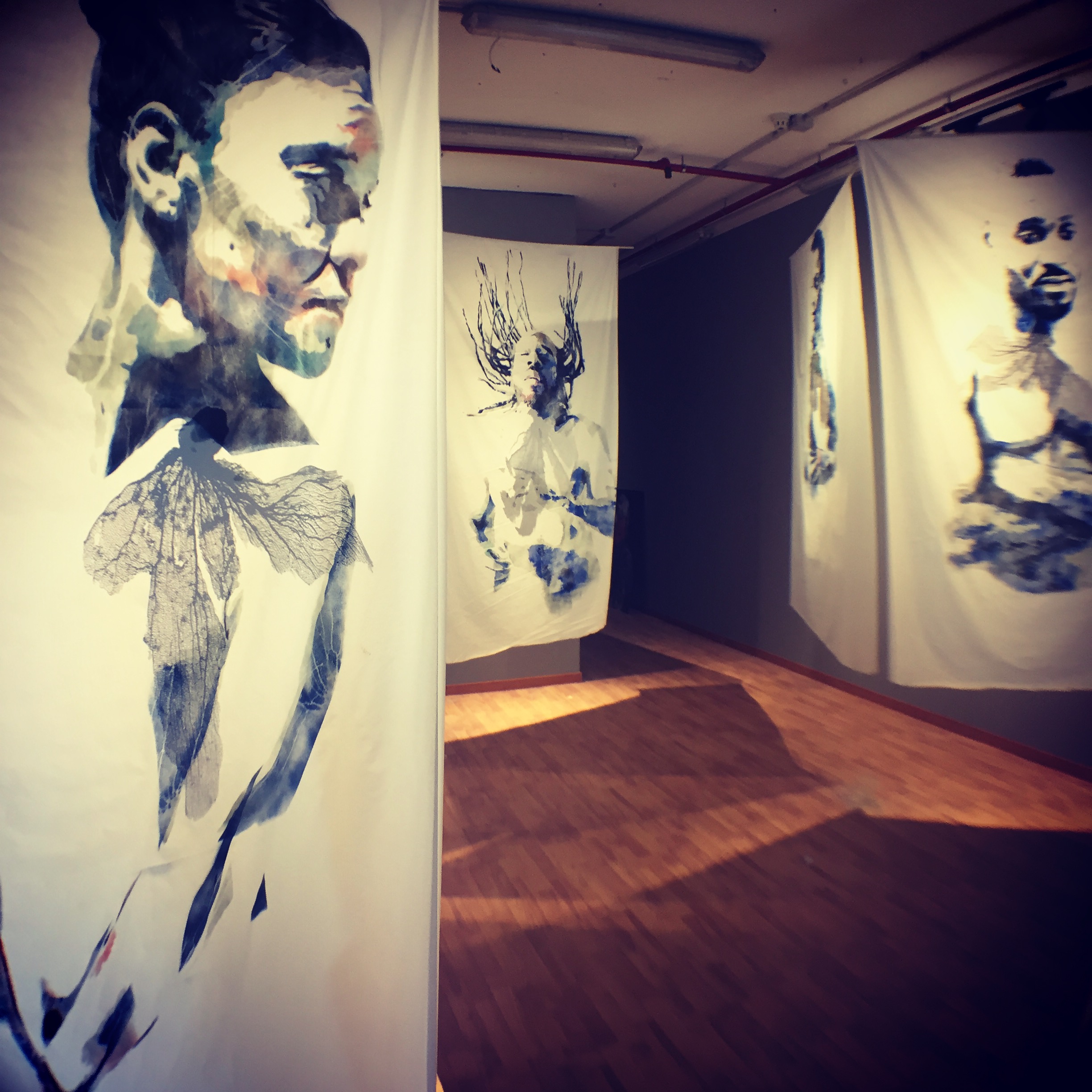For the 57th La Biennale di Venezia I had the privilege of representing my country as part of an Official National Pavilion at the world’s oldest and largest stage for contemporary art. The event, lasting from Mid-May to late November 2017, saw hundreds of thousands of the world’s most attentive visitors as they came to this sort of “Olympics of Art”. The Grenada National Pavilion welcomed over 60,000 visitors who made their way away from the central Arsenale and Giardini to see and dialogue with Grenada and its contemporary art in this global conversation. I showed proudly along with fellow Grenadian artist, Milton Williams and our headliner for the pavilion, Jason deCaires Taylor who is world renowned, of Caribbean descent, and the creator of Grenada’s Under Water Sculpture park. Our offering of art on behalf of Grenada as a nation was noticed and commended by many international publications and we have been received warmly by the international art community. Sea Lungs, my installation of 8 pieces of sail cloth measuring 5’ x 8’ each with figures sprayed onto them and made complete with a sea fan to represent the figures lungs, were highly visible on social media and a visitor favourite.