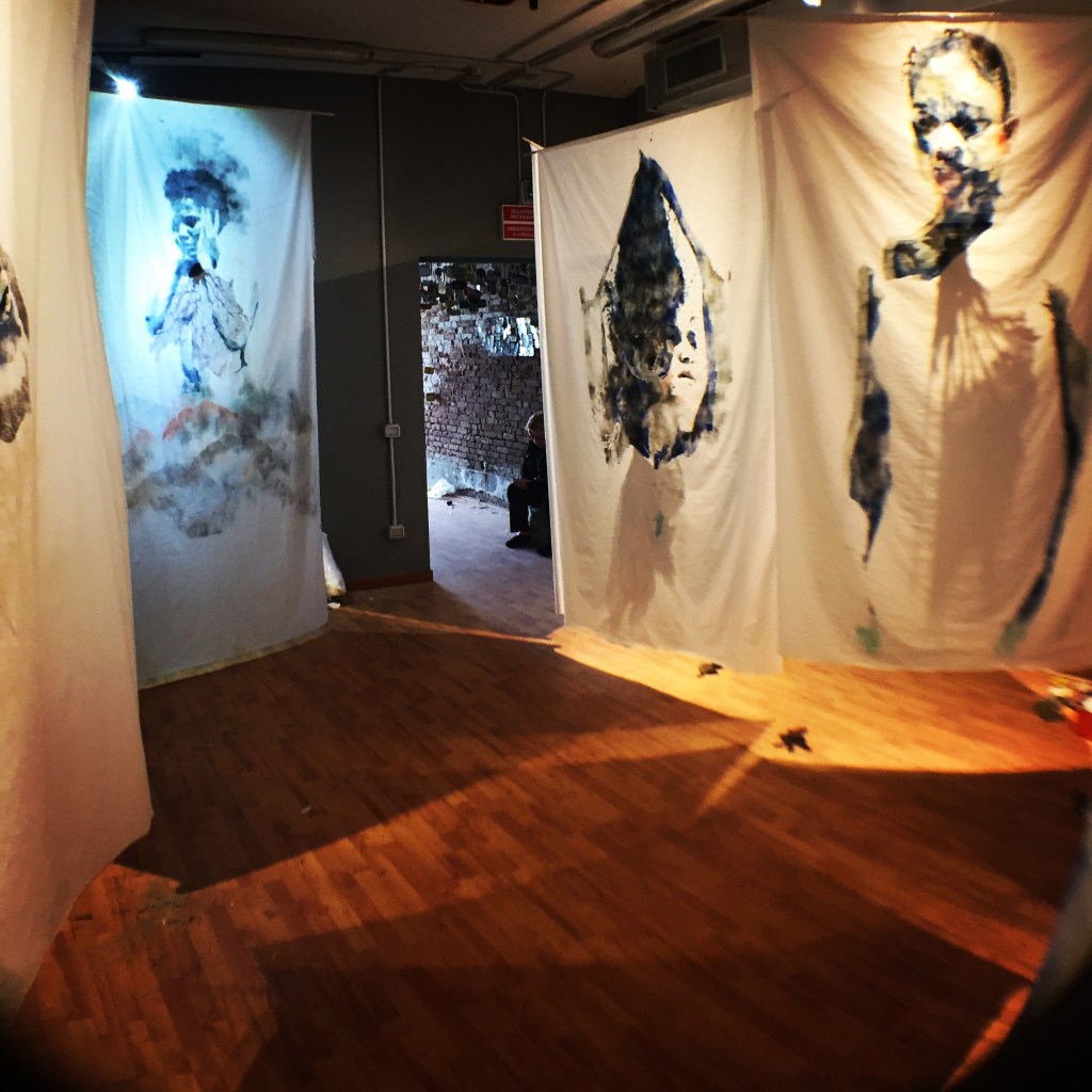 It’s not the way an artist expects to wrap up an exhibit, especially an exhibit on the world stage. It was with a heavy heart that I let out the initial information that my work, Sea Lungs, which was shown in the Grenada National Pavilion at the 57th Biennale di Venezia was missing. With more information and evidence secured I am sharing the unfortunate news that the installation, consisting of 8 paintings on sail cloth, was stolen. At this point, the suspect is not responding to communication, I do not have hope of recovering the work and so I feel that there is nothing to lose in telling my story about Sea Lungs being stolen from the Grenada National Pavilion in Venice.
