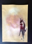 These works are 9″x13″ spray paint on paper. This work references the painted portraits for cocoa farmers project and the figure in the piece is Joanne who works with Belmont Estate.